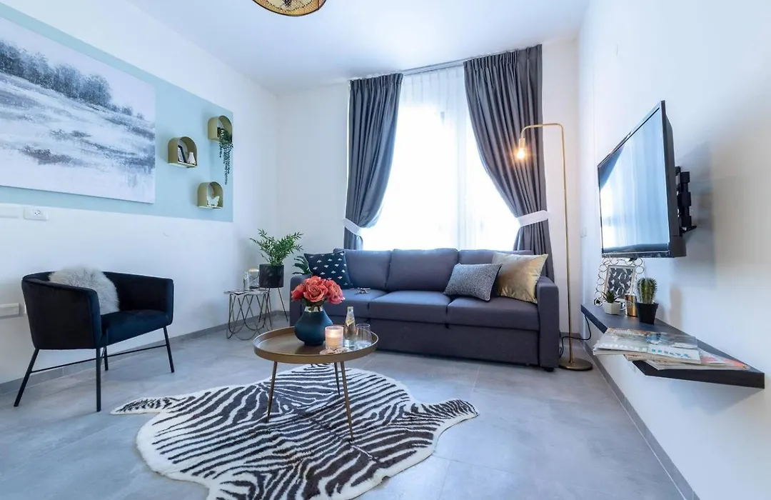 Το διαμέρισμα διαθέτει κουζίνα, η οποία είναι εξοπλισμένη με πλυντήριο πιάτων, ψυγείο και πλυντήριο ρούχων.Το κατάλυμα απέχει περίπου 45 χλμ. από το αεροδρόμιο Μπεν Γκουριόν.